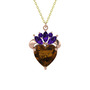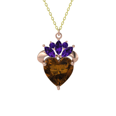 Dumanlı kuvars ve ametist 8 ayar rose altın kolye (40 cm altın rolo zincir)