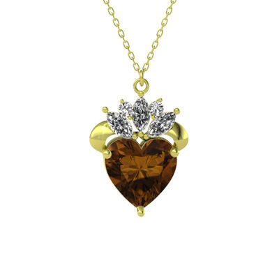 Dumanlı kuvars ve beyaz zirkon 925 ayar altın kaplama gümüş kolye (40 cm gümüş rolo zincir)