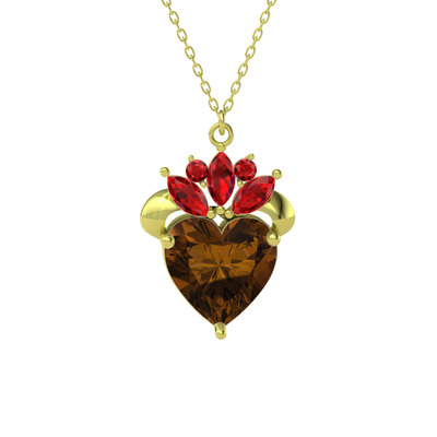 Dumanlı kuvars ve garnet 925 ayar altın kaplama gümüş kolye (40 cm altın rolo zincir)