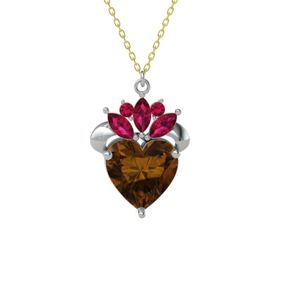 Dumanlı kuvars ve rodolit garnet 18 ayar beyaz altın kolye (40 cm altın rolo zincir)