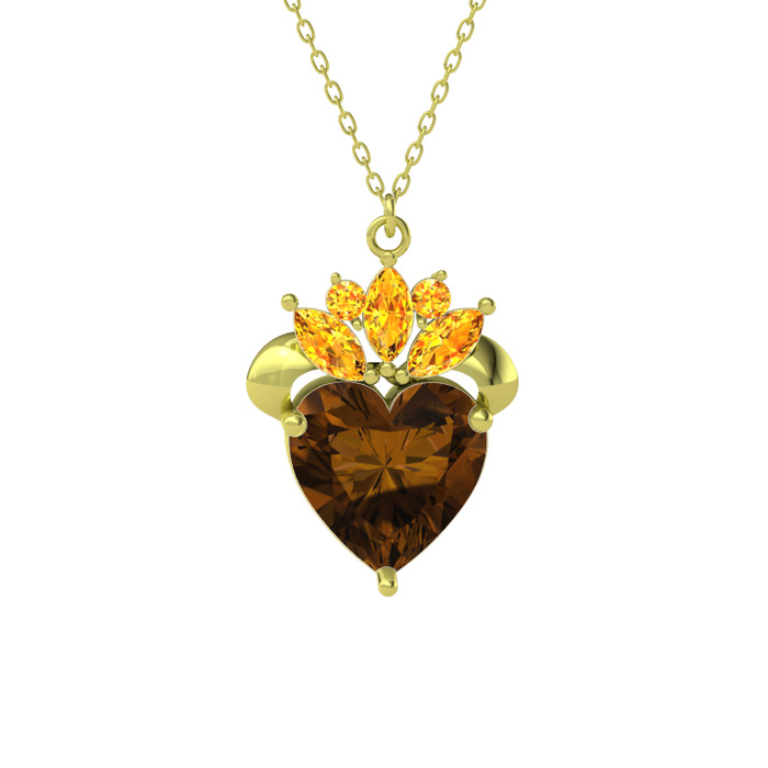 Dumanlı kuvars ve sitrin 8 ayar altın kolye (40 cm gümüş rolo zincir)