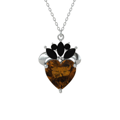 Dumanlı kuvars ve siyah zirkon 18 ayar beyaz altın kolye (40 cm beyaz altın rolo zincir)