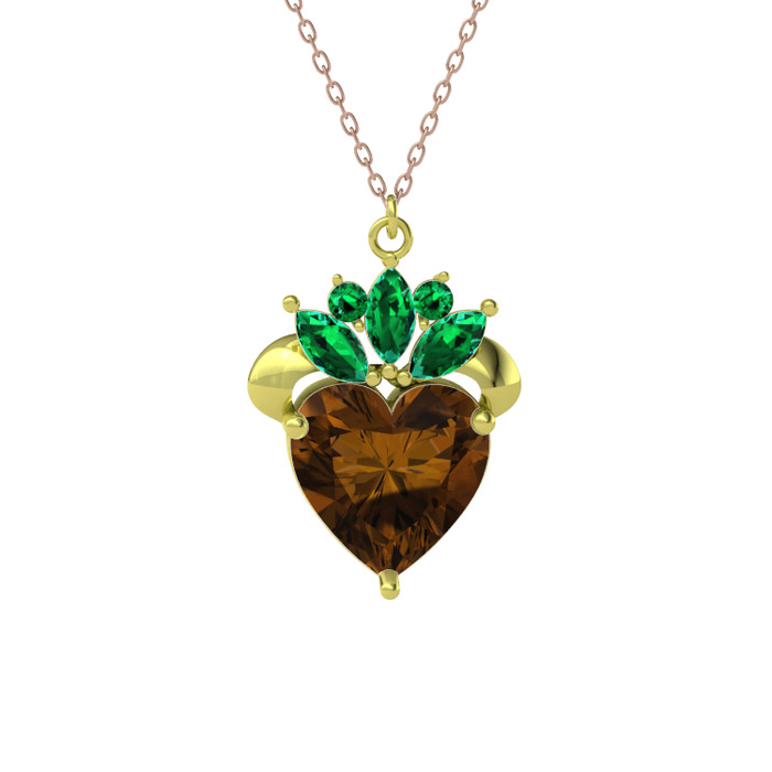 Dumanlı kuvars ve yeşil kuvars 18 ayar altın kolye (40 cm rose altın rolo zincir)