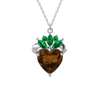Dumanlı kuvars ve yeşil kuvars 18 ayar beyaz altın kolye (40 cm beyaz altın rolo zincir)