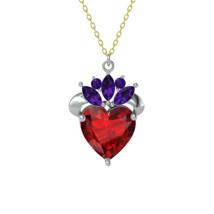 Garnet ve ametist 18 ayar beyaz altın kolye (40 cm gümüş rolo zincir)