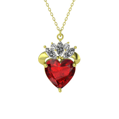 Garnet ve beyaz zirkon 925 ayar altın kaplama gümüş kolye (40 cm altın rolo zincir)