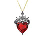 Garnet ve beyaz zirkon 925 ayar siyah rodyum kaplama gümüş kolye (40 cm altın rolo zincir)