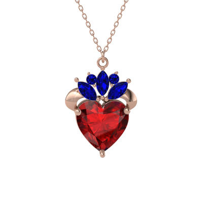 Garnet ve lab safir 8 ayar rose altın kolye (40 cm rose altın rolo zincir)