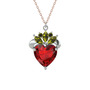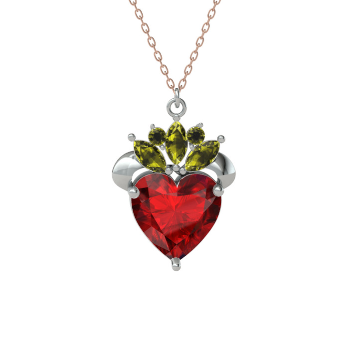 Garnet ve peridot 18 ayar beyaz altın kolye (40 cm rose altın rolo zincir)