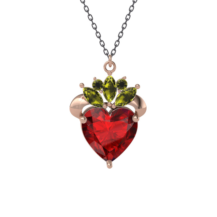 Garnet ve peridot 18 ayar rose altın kolye (40 cm gümüş rolo zincir)