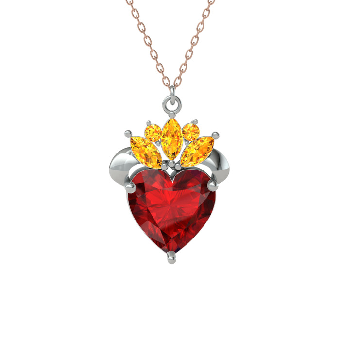 Garnet ve sitrin 18 ayar beyaz altın kolye (40 cm rose altın rolo zincir)