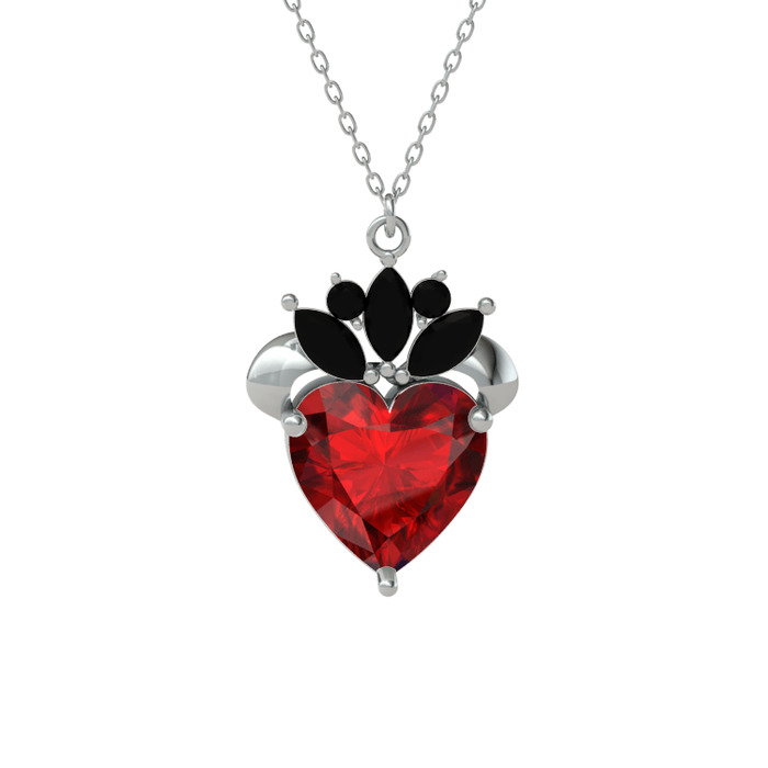 Garnet ve siyah zirkon 925 ayar gümüş kolye (40 cm beyaz altın rolo zincir)