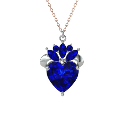 Lab safir 18 ayar beyaz altın kolye (40 cm rose altın rolo zincir)