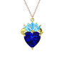 Lab safir ve akuamarin 8 ayar altın kolye (40 cm rose altın rolo zincir)