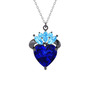 Lab safir ve akuamarin 925 ayar siyah rodyum kaplama gümüş kolye (40 cm beyaz altın rolo zincir)