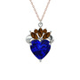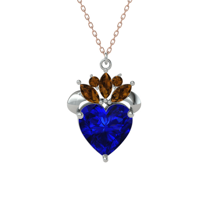 Lab safir ve dumanlı kuvars 18 ayar beyaz altın kolye (40 cm rose altın rolo zincir)