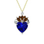 Lab safir ve dumanlı kuvars 925 ayar gümüş kolye (40 cm altın rolo zincir)