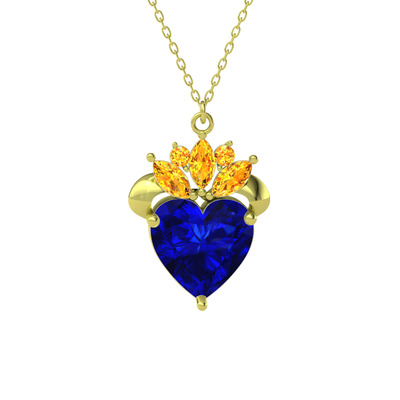 Lab safir ve sitrin 14 ayar altın kolye (40 cm altın rolo zincir)