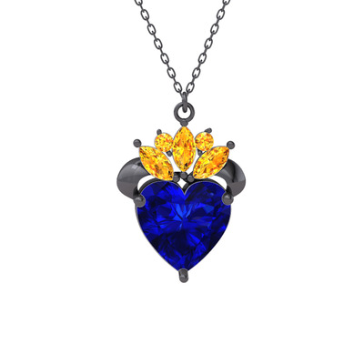 Lab safir ve sitrin 925 ayar siyah rodyum kaplama gümüş kolye (40 cm gümüş rolo zincir)