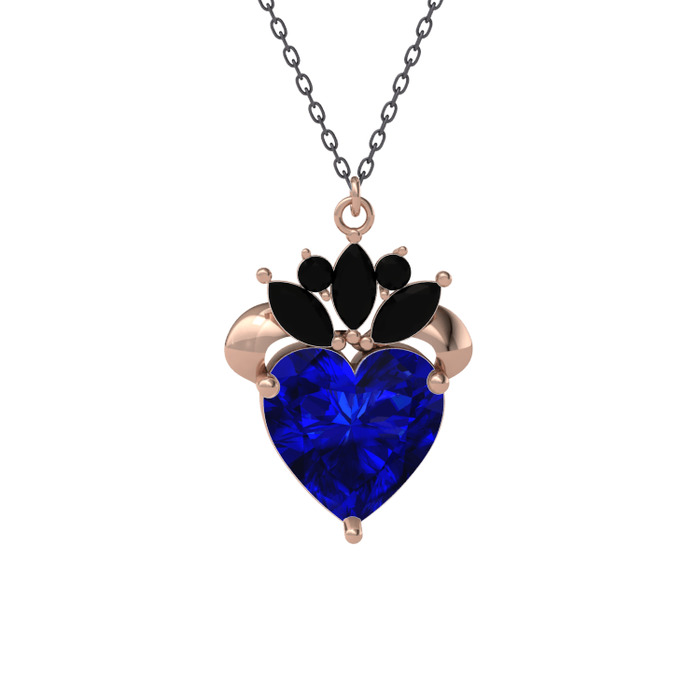 Lab safir ve siyah zirkon 14 ayar rose altın kolye (40 cm gümüş rolo zincir)