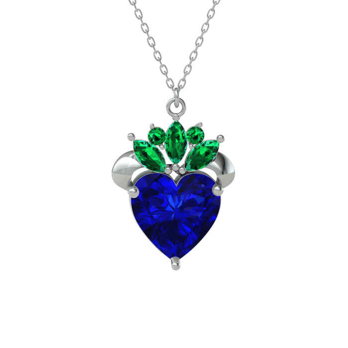 Lab safir ve yeşil kuvars 18 ayar beyaz altın kolye (40 cm beyaz altın rolo zincir)
