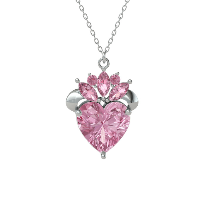 Pembe kuvars 18 ayar beyaz altın kolye (40 cm beyaz altın rolo zincir)