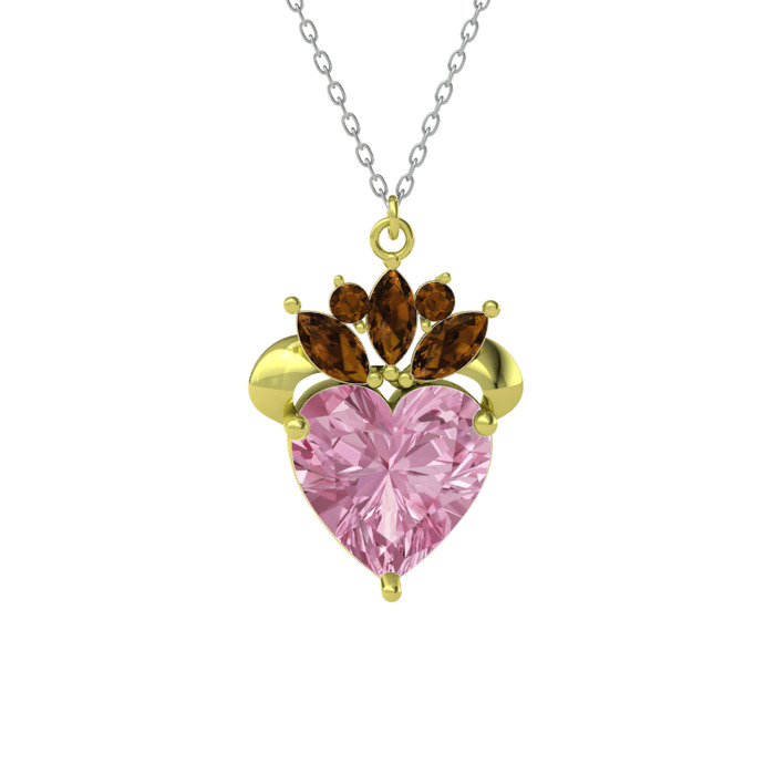 Pembe kuvars ve dumanlı kuvars 14 ayar altın kolye (40 cm beyaz altın rolo zincir)