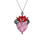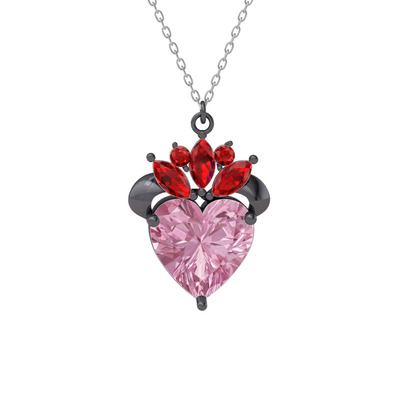 Pembe kuvars ve garnet 925 ayar siyah rodyum kaplama gümüş kolye (40 cm beyaz altın rolo zincir)