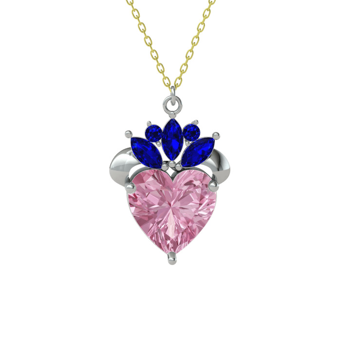 Pembe kuvars ve lab safir 14 ayar beyaz altın kolye (40 cm altın rolo zincir)