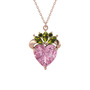 Pembe kuvars ve peridot 14 ayar rose altın kolye (40 cm rose altın rolo zincir)