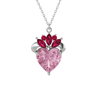 Pembe kuvars ve rodolit garnet 18 ayar beyaz altın kolye (40 cm beyaz altın rolo zincir)