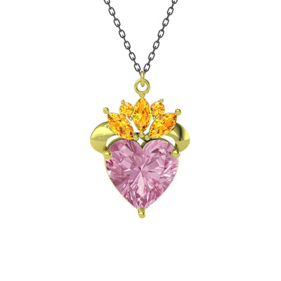 Pembe kuvars ve sitrin 925 ayar altın kaplama gümüş kolye (40 cm gümüş rolo zincir)