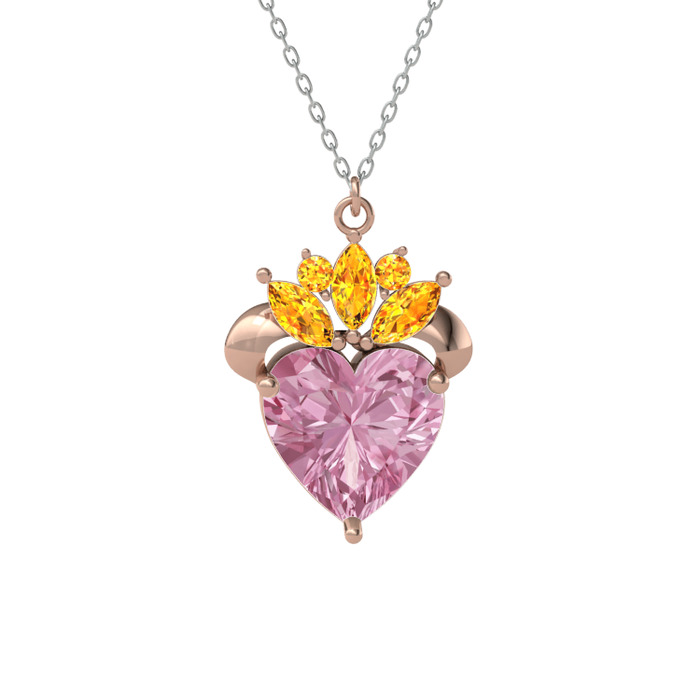 Pembe kuvars ve sitrin 925 ayar rose altın kaplama gümüş kolye (40 cm gümüş rolo zincir)