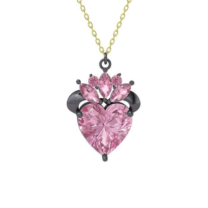 Pembe kuvars 925 ayar siyah rodyum kaplama gümüş kolye (40 cm altın rolo zincir)