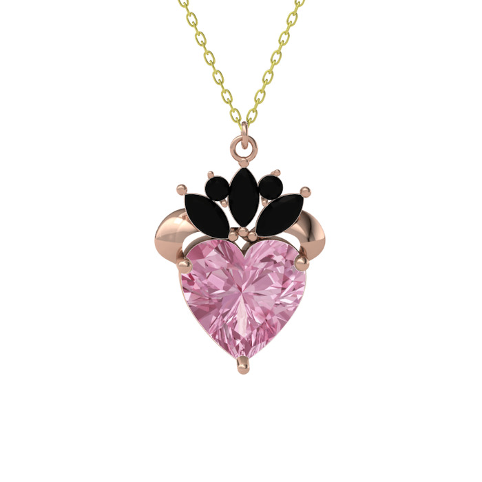 Pembe kuvars ve siyah zirkon 8 ayar rose altın kolye (40 cm altın rolo zincir)