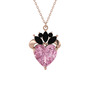 Pembe kuvars ve siyah zirkon 8 ayar rose altın kolye (40 cm rose altın rolo zincir)