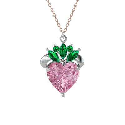 Pembe kuvars ve yeşil kuvars 18 ayar beyaz altın kolye (40 cm gümüş rolo zincir)