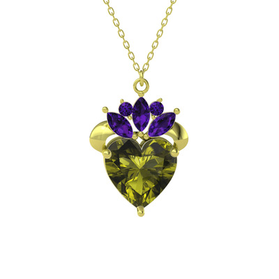 Peridot ve ametist 14 ayar altın kolye (40 cm altın rolo zincir)