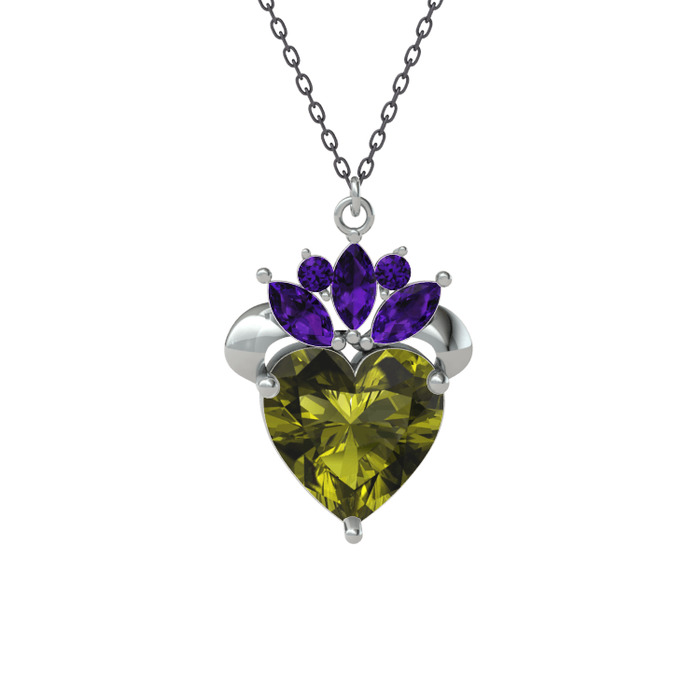 Peridot ve ametist 14 ayar beyaz altın kolye (40 cm gümüş rolo zincir)