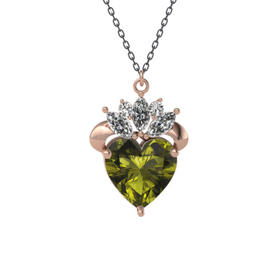 Peridot ve beyaz zirkon 8 ayar rose altın kolye (40 cm gümüş rolo zincir)