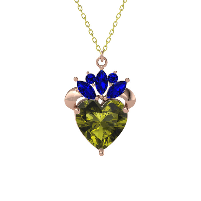 Peridot ve lab safir 14 ayar rose altın kolye (40 cm altın rolo zincir)