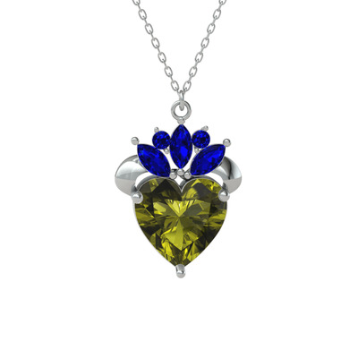 Peridot ve lab safir 8 ayar beyaz altın kolye (40 cm beyaz altın rolo zincir)