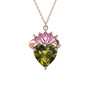 Peridot ve pembe kuvars 14 ayar rose altın kolye (40 cm rose altın rolo zincir)