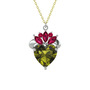 Peridot ve rodolit garnet 18 ayar beyaz altın kolye (40 cm gümüş rolo zincir)