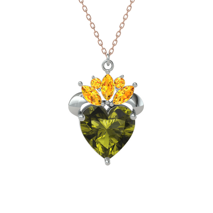 Peridot ve sitrin 18 ayar beyaz altın kolye (40 cm rose altın rolo zincir)