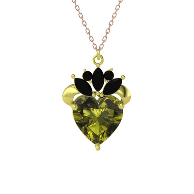 Peridot ve siyah zirkon 14 ayar altın kolye (40 cm rose altın rolo zincir)
