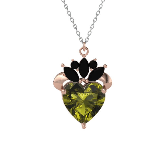 Peridot ve siyah zirkon 18 ayar rose altın kolye (40 cm beyaz altın rolo zincir)
