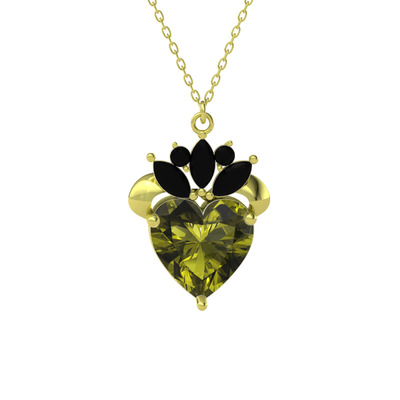 Peridot ve siyah zirkon 925 ayar altın kaplama gümüş kolye (40 cm altın rolo zincir)