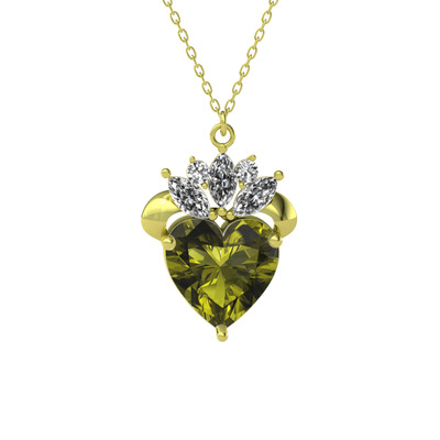 Peridot ve swarovski 8 ayar altın kolye (40 cm gümüş rolo zincir)