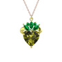 Peridot ve yeşil kuvars 18 ayar altın kolye (40 cm rose altın rolo zincir)